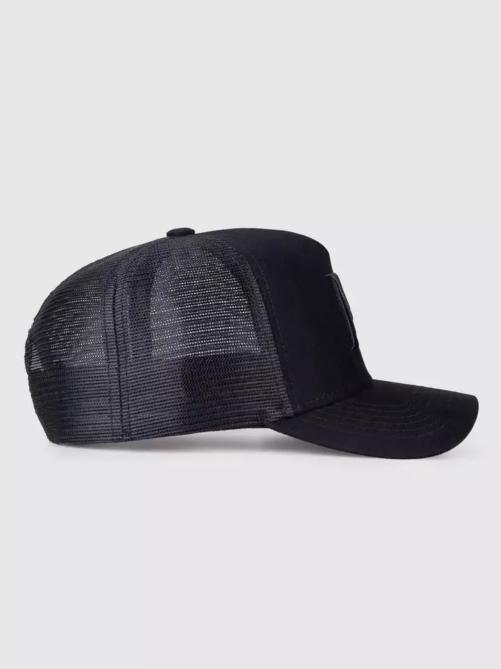 Boné Trucker Maverick All Black MVCK, confeccionado em brim algodão.