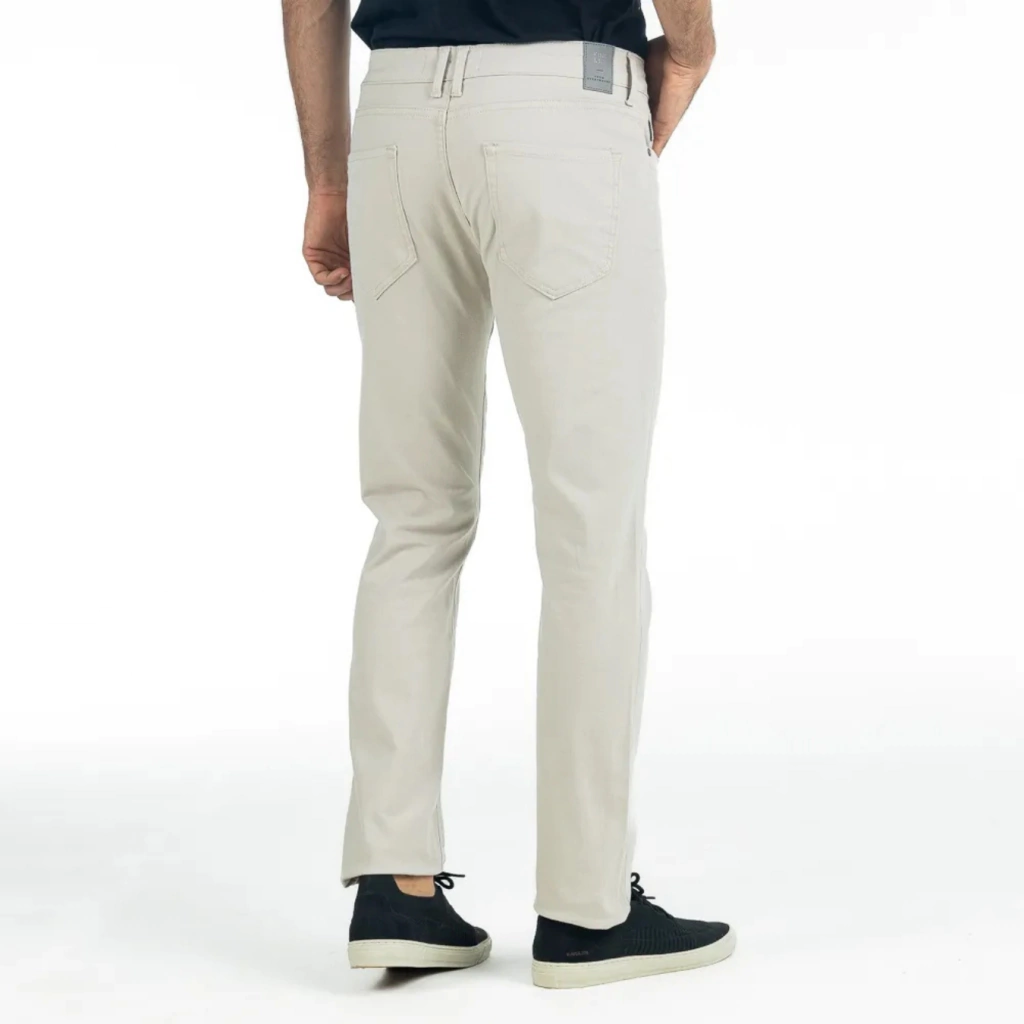 Confeccionada com 97% algodão e 3% elastano, a calça oferece uma sensação agradável ao toque e liberdade de movimento. O tecido de alta qualidade proporciona um caimento impecável, valorizando a silhueta masculina de forma discreta e sofisticada.