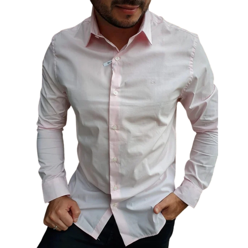 Camisa Calvin Klein CK M/L Slim Cannes Básica Essential Rosa Claro