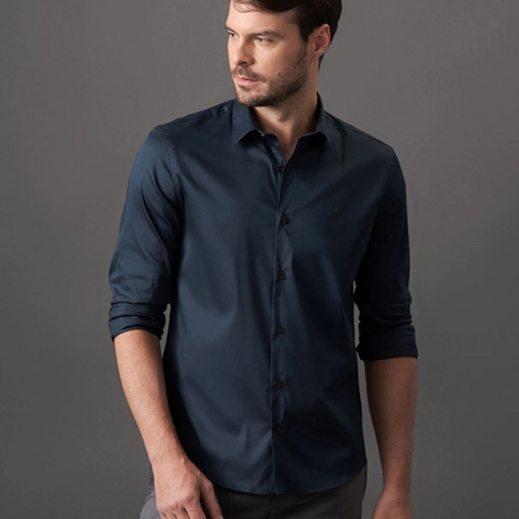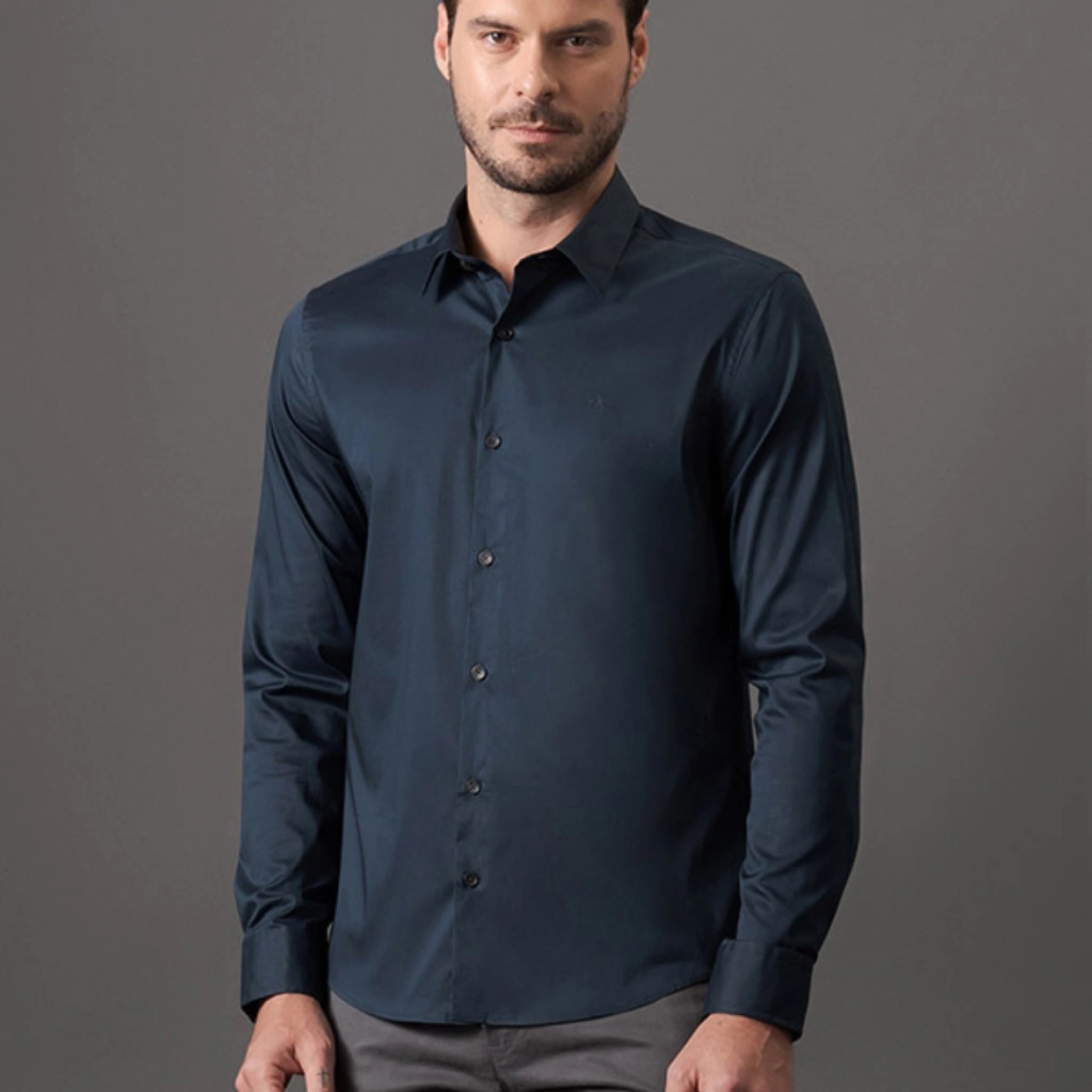Camisa Calvin Klein M/L Algodão Poliamida Marinho: A Elegância em Cada Detalhe