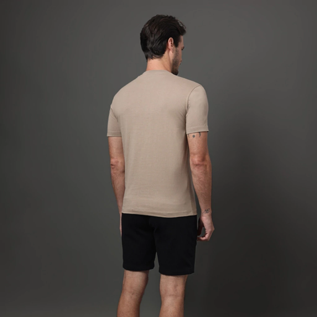 Essa camiseta une sofisticação e versatilidade. Confeccionada em 100% algodão, oferece conforto e excelente caimento. A tonalidade caqui claro adiciona um toque estiloso ao visual casual, enquanto a estampa em alto relevo da marca no peito garante identidade e autenticidade.