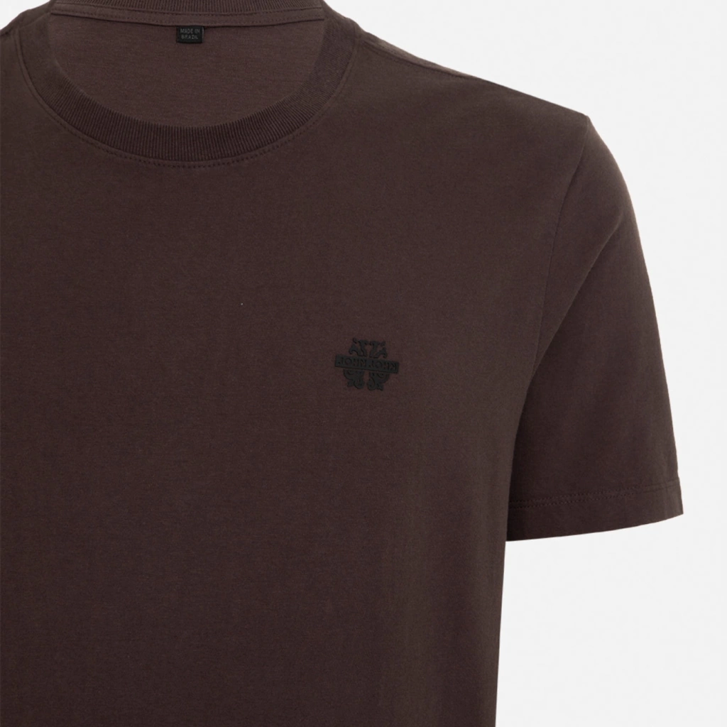 Com uma gola careca e mangas curtas, essa camiseta é perfeita para criar looks casuais ou até mesmo mais arrumados. A cor marrom escuro é uma escolha versátil, que combina facilmente com jeans, bermudas ou sob um blazer, adaptando-se ao seu estilo único.