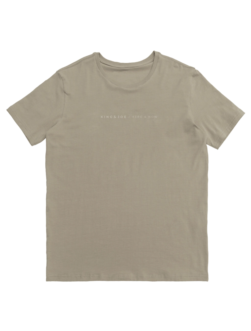 Design Minimalista: O destaque é a estampa centralizada com a escrita "KING & JOE / HERE & NOW" aplicada=. O design sutil e sofisticado agrega valor à peça sem perder a versatilidade.