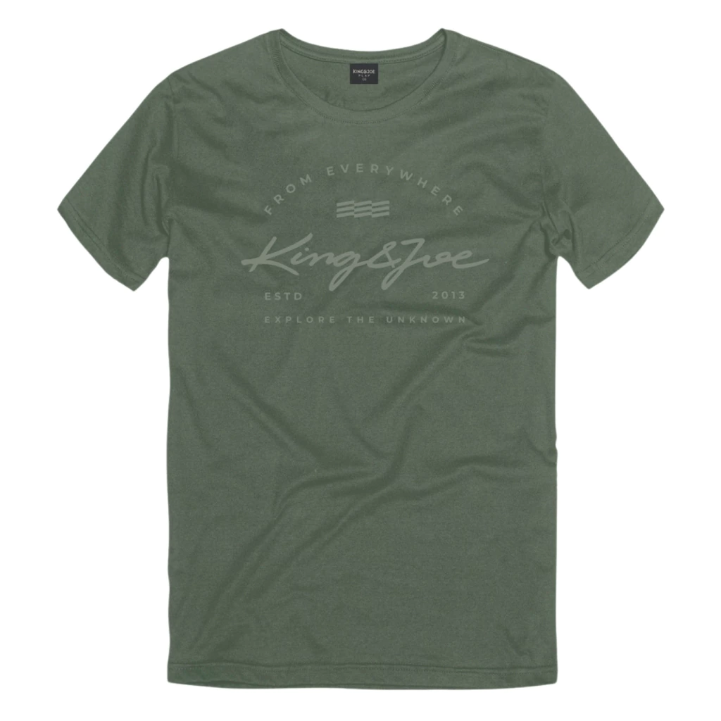 Não perca a chance de adicionar essa peça única ao seu guarda-roupa e mostre ao mundo a sua verdadeira essência com a Camiseta Masculina King&Joe Explore The Verde Militar!