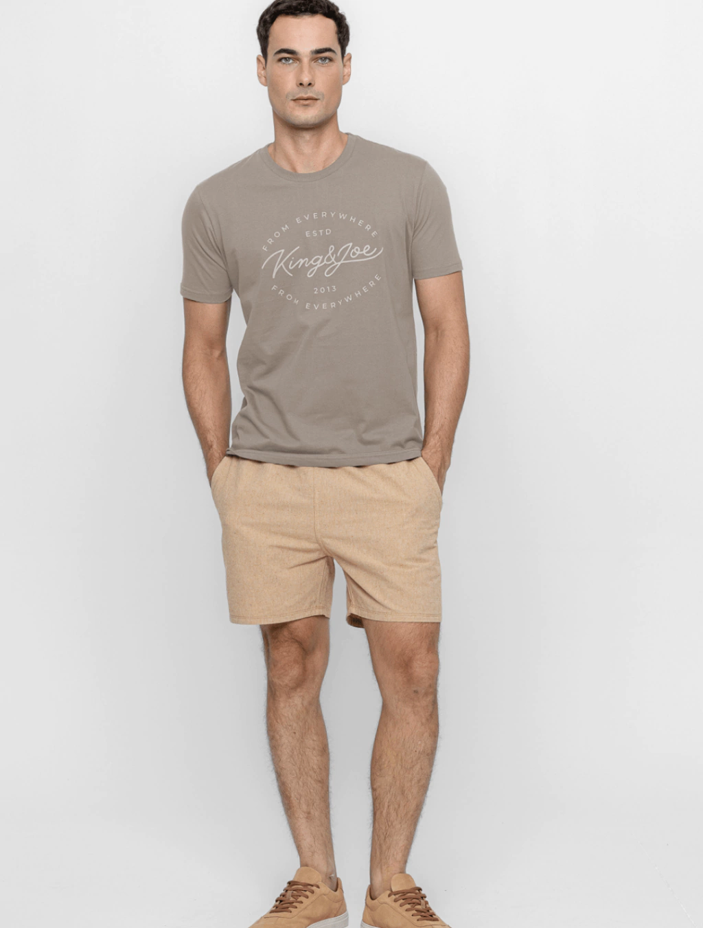 O design exclusivo traz a estampa com a frase em inglês “From Everywhere – ESTD 2013”, que traduzida significa: “De todos os lugares. Desde 2013”, destacando a identidade da marca King&Joe.