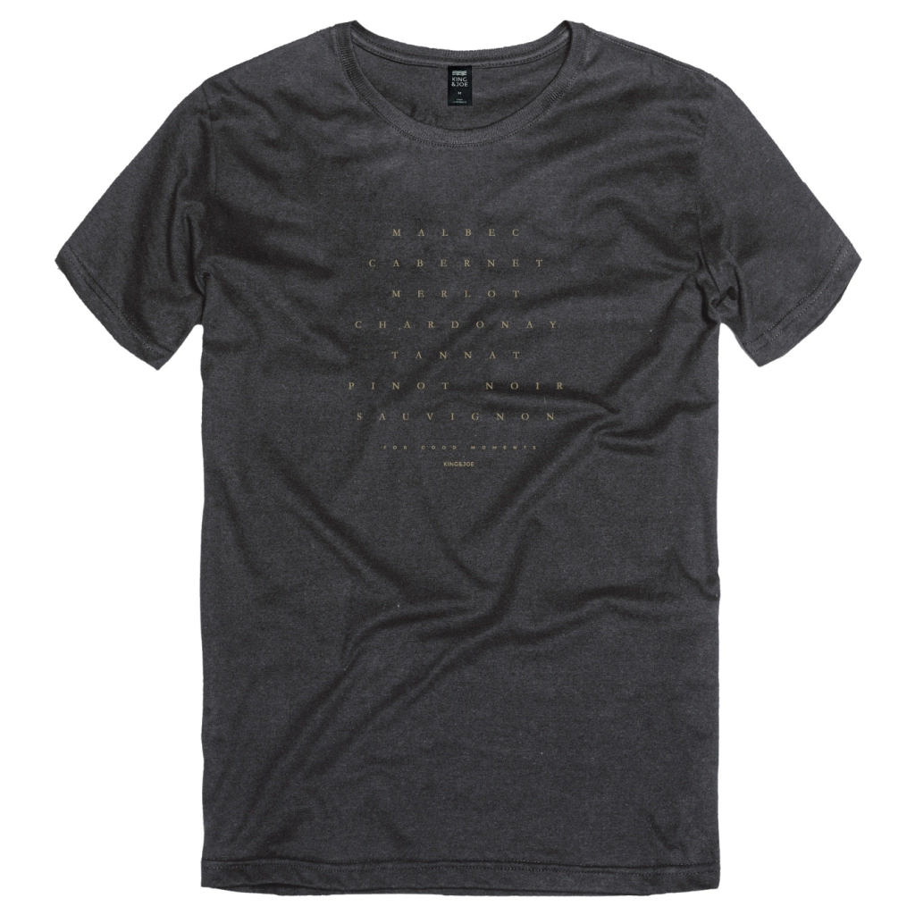 O destaque fica por conta da estampa exclusiva que retrata diferentes tipos de vinho, tornando-a uma escolha ideal para os apreciadores dessa bebida refinada. A gola redonda com acabamento canelado e a logo tipográfica King&Joe, em tom contrastante, completam o design sofisticado da peça.
