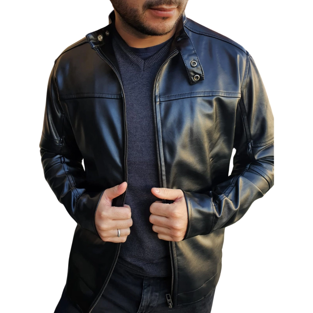Confeccionada em couro sintético de alta qualidade, a jaqueta oferece uma textura suave e um caimento impecável, que se ajusta perfeitamente à silhueta masculina. Seu design arrojado combina conforto e estilo, tornando-a ideal para diversas ocasiões, desde um passeio casual até um evento mais formal.