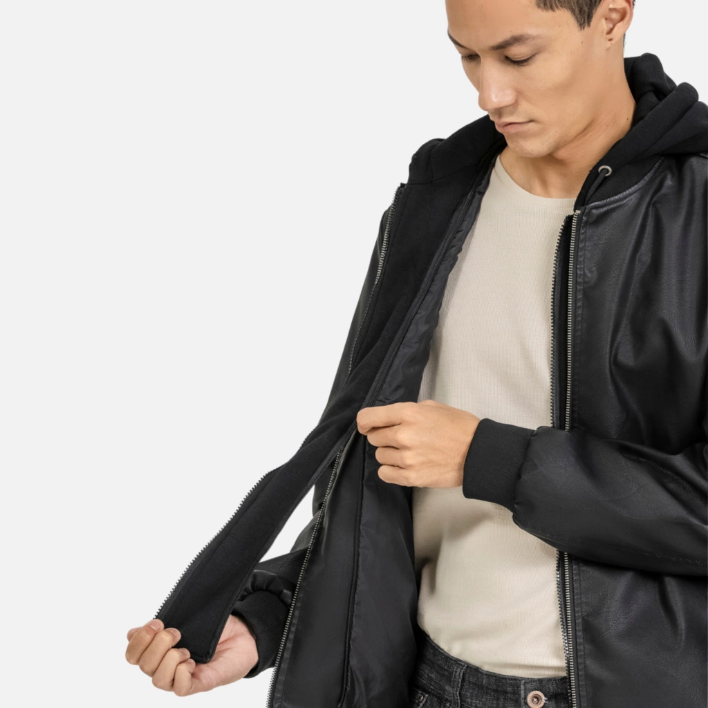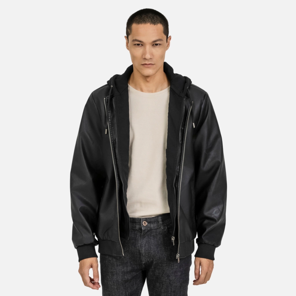 Jaqueta King&Joe Couro Sintético Bomber Capuz Preto: A Expressão do Estilo Moderno
