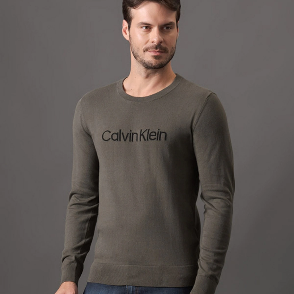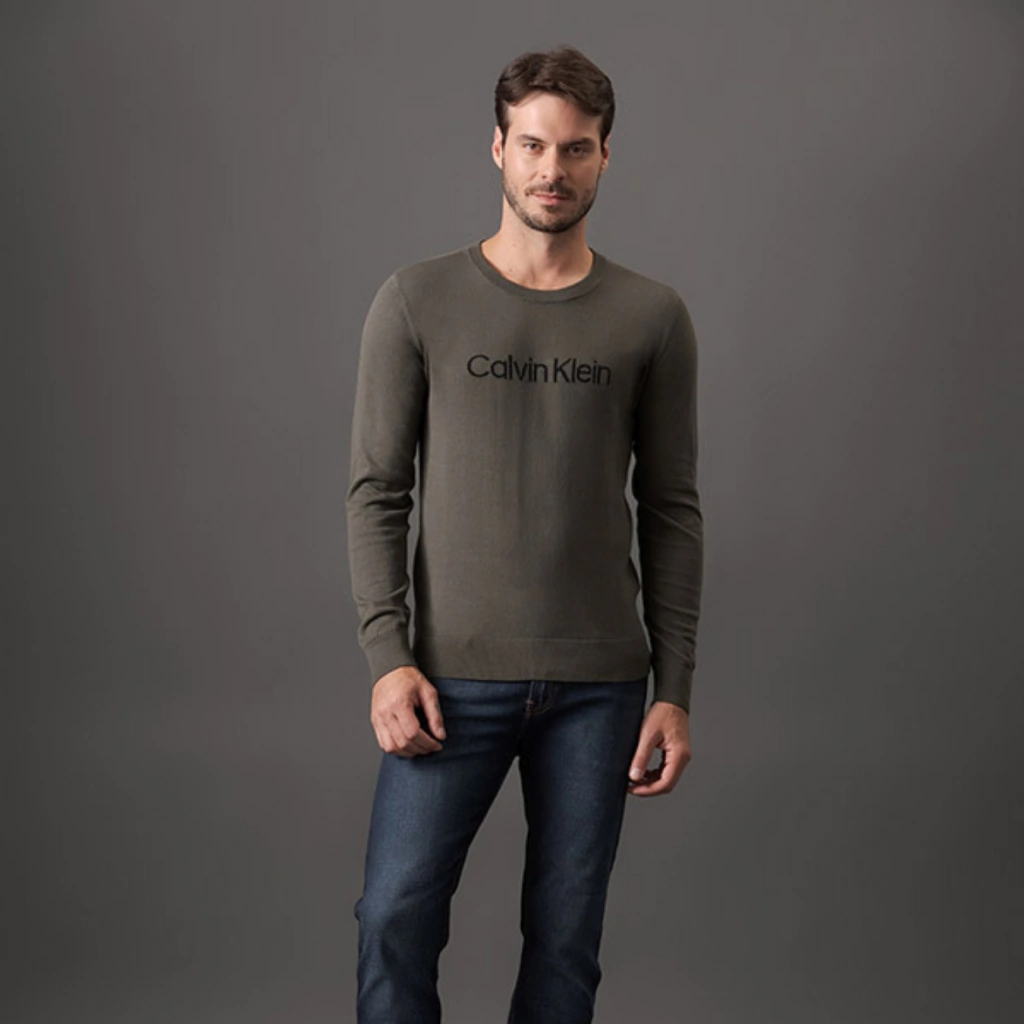 Suéter Tricot Calvin Klein Assinatura Verde Militar: transforme seu estilo com essa peça indispensável no guarda-roupa masculino!